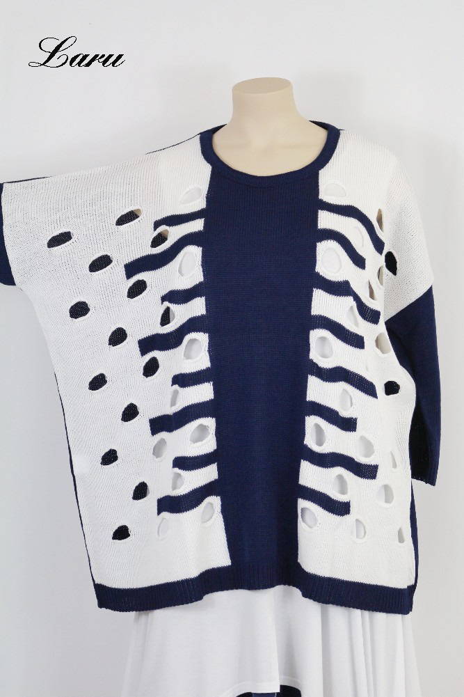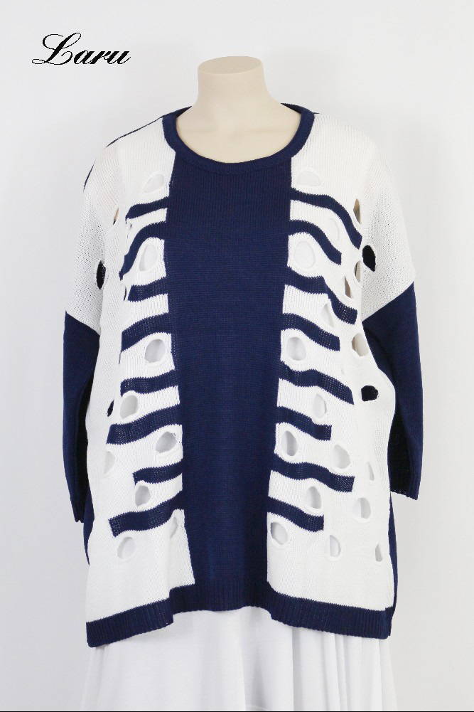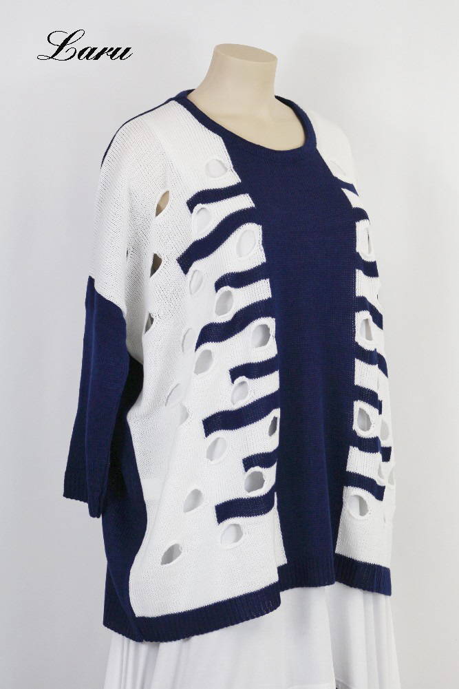 Pullover Lochmuster Part 355 [Unisex | dunkelblau/ecru]