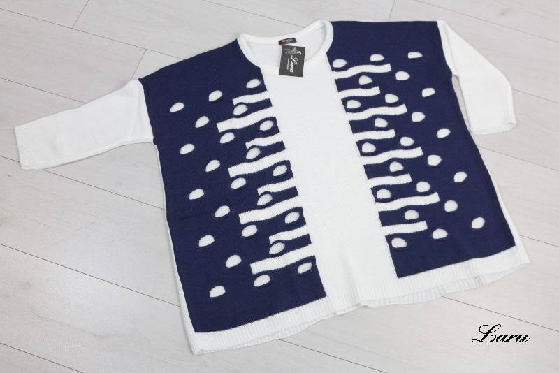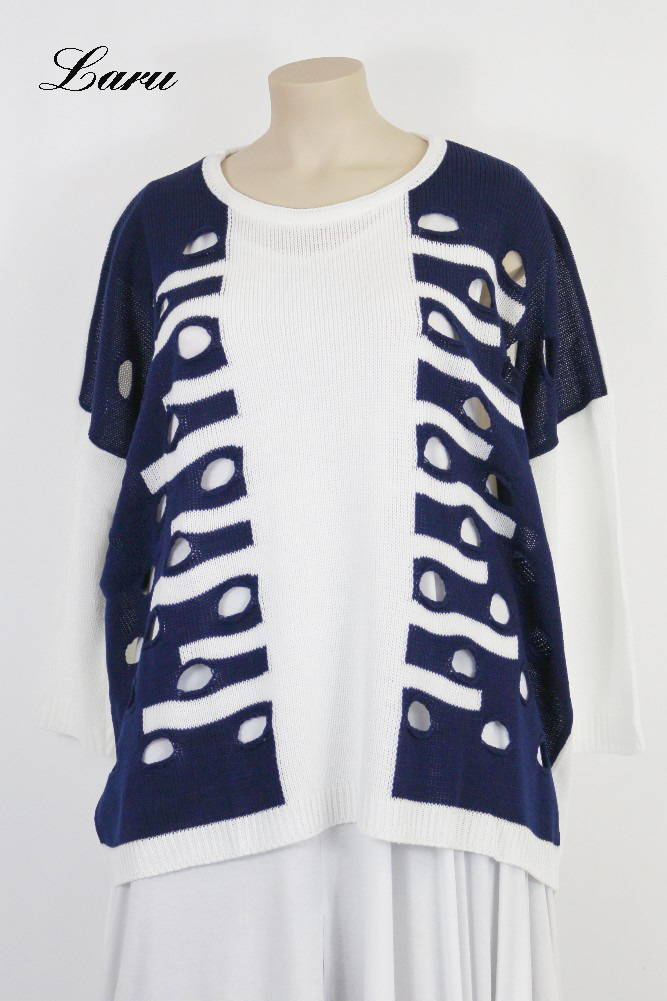 Pullover Lochmuster Part 355 [Unisex | ecru/dunkelblau]