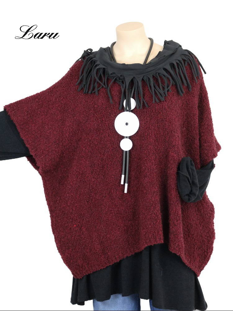 Art.Nr.: W25P89MiZUA850Strickpullover lang Wollboucle Big Size 8312B [OneSize | weinrot]