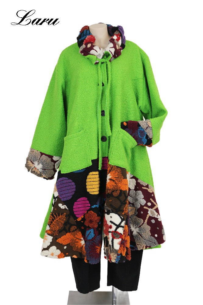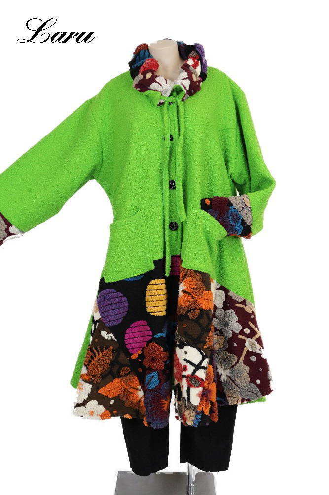 Art.Nr.: W25M89WoGPD000Wollmantel Patchwork grün 6074 [OneSize | Grün]